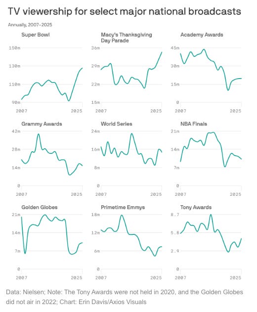 Media trend: Major live TV events saw a notable ratings uptick in 2025, underscoring how much audiences are craving communal, real-time experiences as their day-to-day viewing habits become more fragmented.