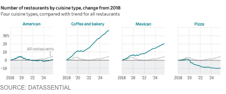 ‼️Pizza is falling out of favor: Pizzerias are now outnumbered by coffee shops and Mexican food eateries.