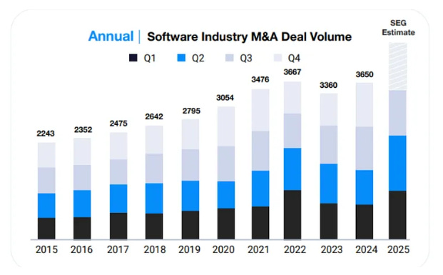 M&A Trends - software M&A volume is on track to hit the highest annual total volume of deals but the average deal size is smaller